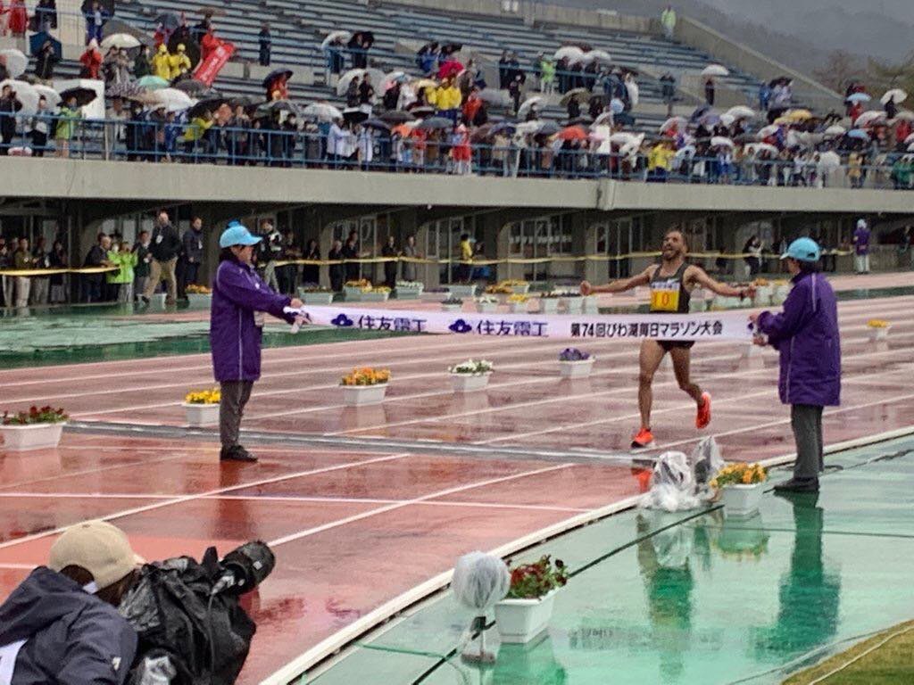 На марафоне озера Бива победил Салах-Эддин Боунаср. Его время 2:07:52.
