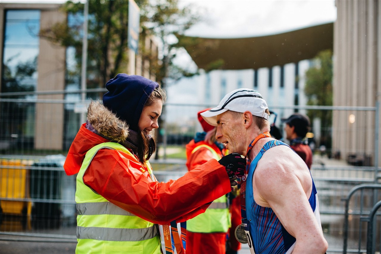 Сегодня волонтёры помогают участникам и гостям сориентироваться на Дворцовой площади. Они ассистируют на старте, заботятся об участниках на пунктах питания и освежения, а на финише вручают медали, выдают воду и фрукты. Также волонтёры работают с элитными спортсменами, в команде хронометража и режиссёрской группе. Первую медицинскую помощь на финише готовы оказать волонтеры-медики.