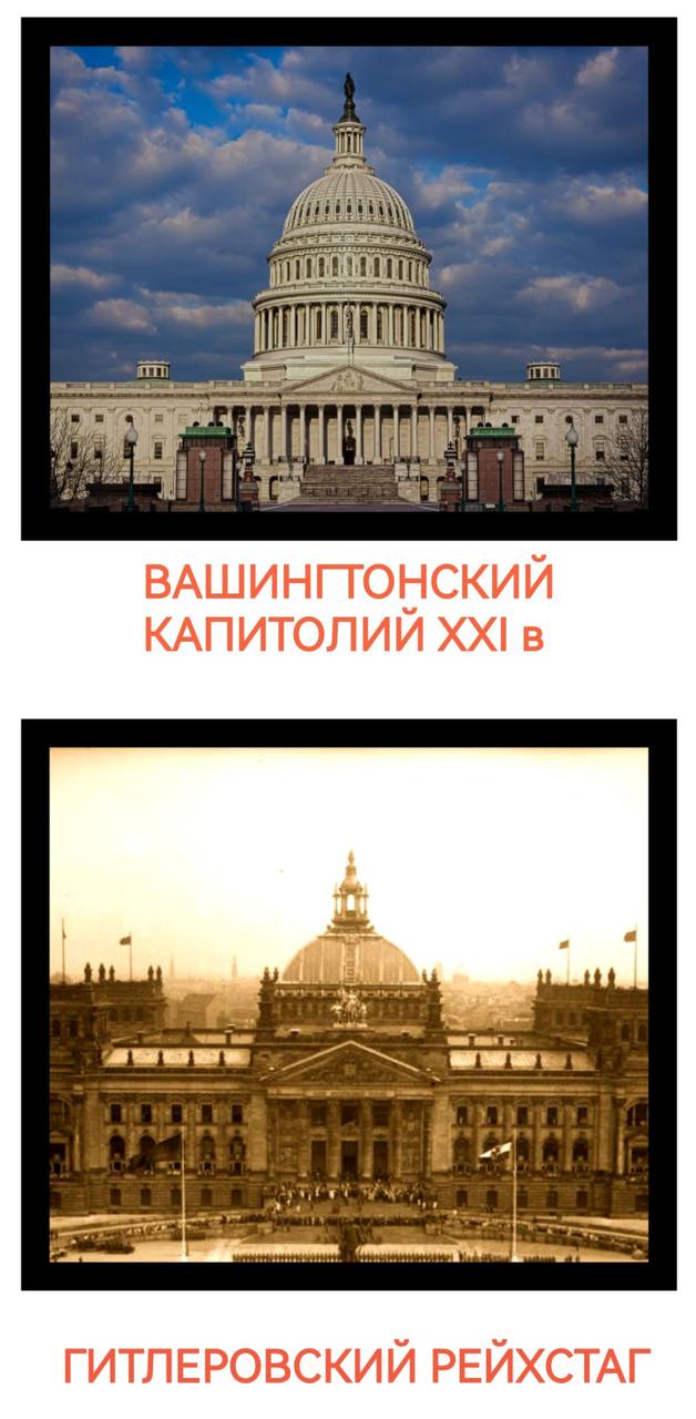 Между тем, Дядя Сэм после самоубийства бесноватого фюрера и разгрома III Рейха нашей армией стал де-факто правопреемником нацистских форм, методов и, главное, целей:
