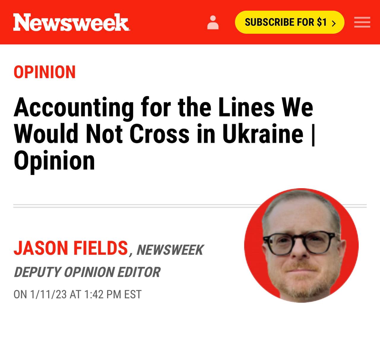 «США предпринимают новые шаги — шаги, которые они обещали не предпринимать — в сторону помощи Украине», написал в Newsweek их обозреватель Д. Филдс. Он же добавил, что страны НАТО опасаются спровоцировать III Мировую, но «пересекают линии», сначала поставив на Украину реактивные системы HIMARS, затем зенитные комплексы Patriot и теперь готовят туда же свои танки.
