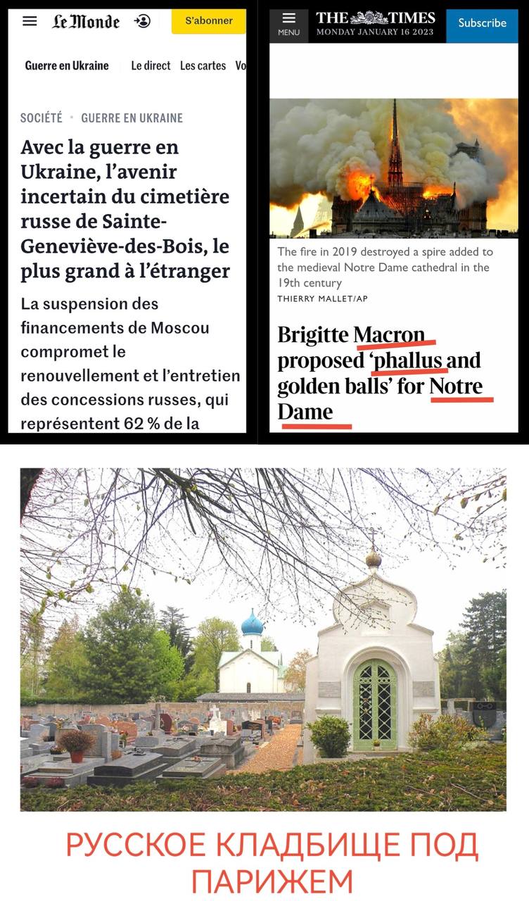 Во всяком случае Times пишет: "Первая леди Франции Брижит Макрон в свое время показывала проект, в котором предлагалось придать фаллические очертания шпилю Собора Парижской Богоматери. Об этом заявила бывший министр культуры Франции мадам Розелин".
