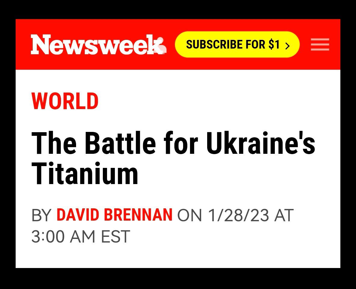 "Сейчас в США и союзных странах предпринимаются усилия по... использованию огромных ресурсов Украины в виде металла [титана - АK], имеющего решающее значение для разработки... военных технологий, которые сформируют основу будущего сдерживания России и Китая" (Newsweek).