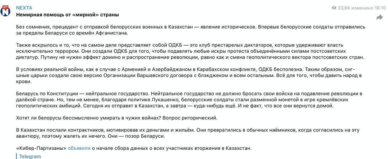 Что такое ОДКБ, как она работает, почему - авторам вообще похуй; «начинаем сбор личных данных об участниках вторжения в Казахстан».
