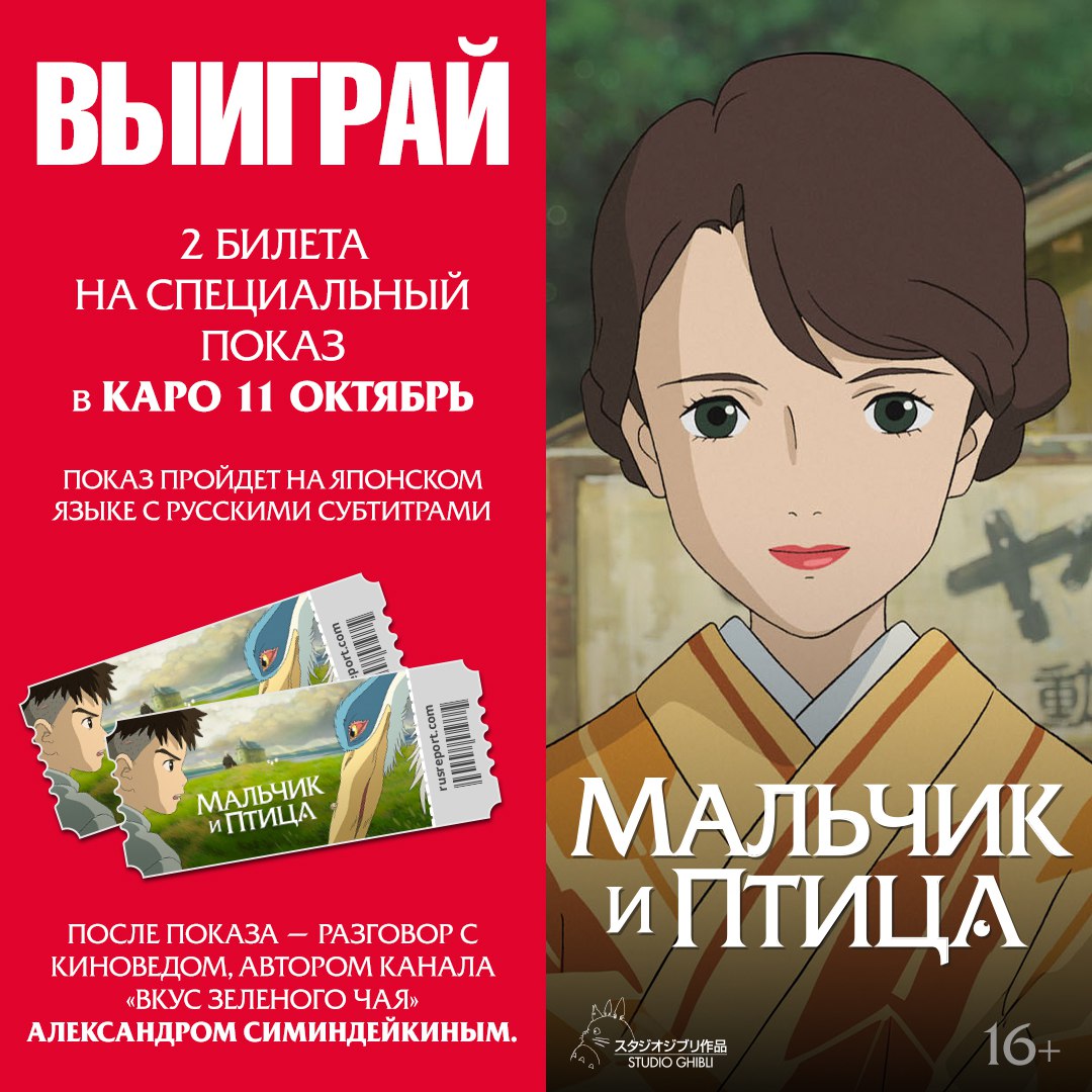 🕊 Розыгрыш билетов на спецпоказы «Мальчика и птицы» Хаяо Миядзаки