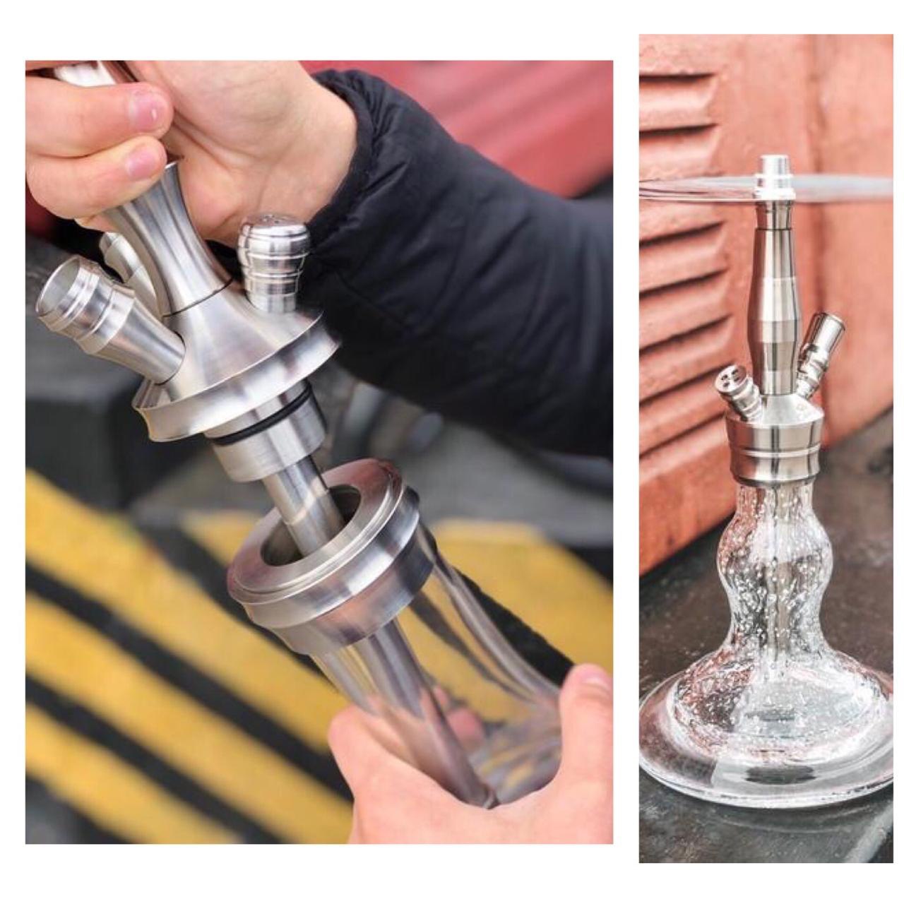 На фотографии один из примеров. Это мини-кальян с классической тягой. Элегантная люминесцентная колба соединятся с шахтой на оринге. Блюдце на притирке. Полный комплект. И цена в районе 7 тыс рублей в рознице.