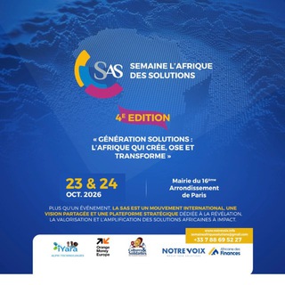 Bienvenue sur la chaîne officielle Telegram de la Semaine l’Afrique des Solutions (SAS), initiative internationale majeure qui raconte l’Afrique autrement par ses solutions concrètes et ses réussites inspirantes, à travers le journalisme de solutions.