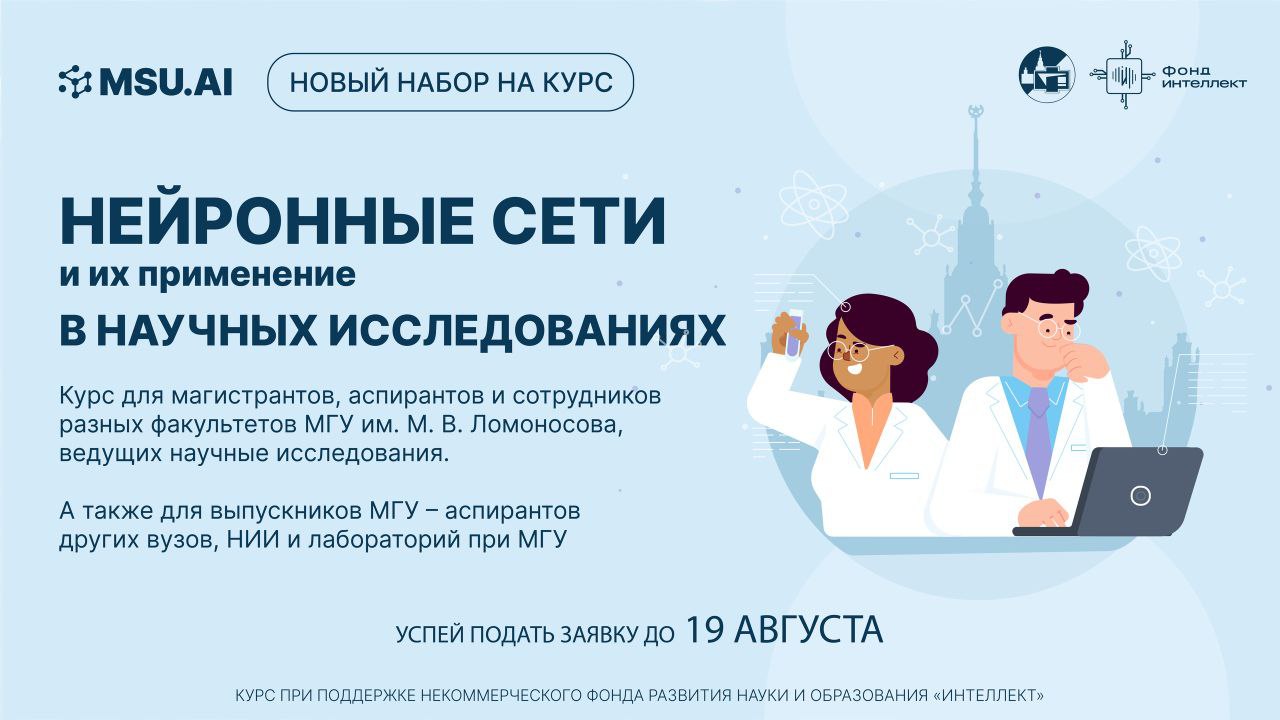 Если вы занимаетесь научными исследованиями в МГУ и хотите освоить методы классического машинного обучения и нейронных сетей, для решения научных задач, не упустите свой шанс!
