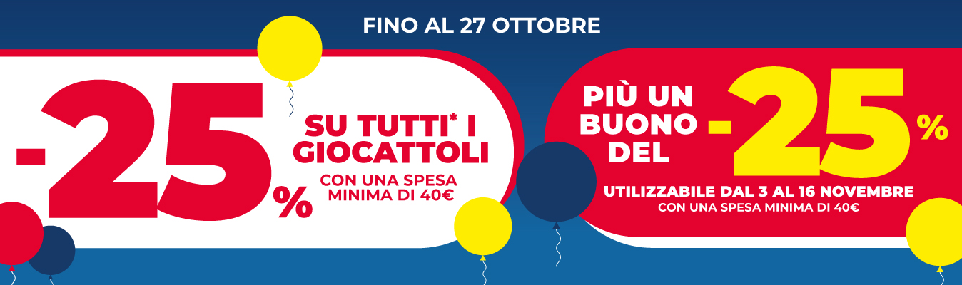 πΉToys Center: Sconto del 25% su una spesa minima di 40β¬ + buono omaggio del 25%βοΈ