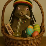 Smoking Easter Bunny is being protected by