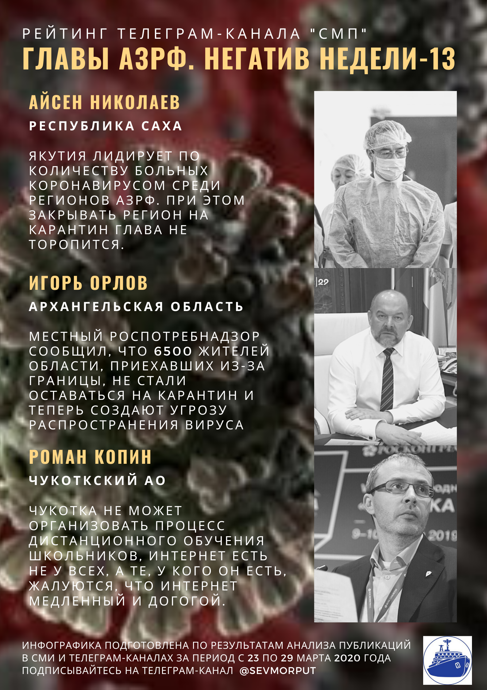 У главы Архангельской области на этой неделе негативных поводов было “хоть отбавляй”. Остановимся на этом - представители Роспотребнадзора рапортуют, что более 6500 жителей области отказались уйти на карантин по возвращению из-за границы и теперь являются потенциальной угрозой для остальных жителей.