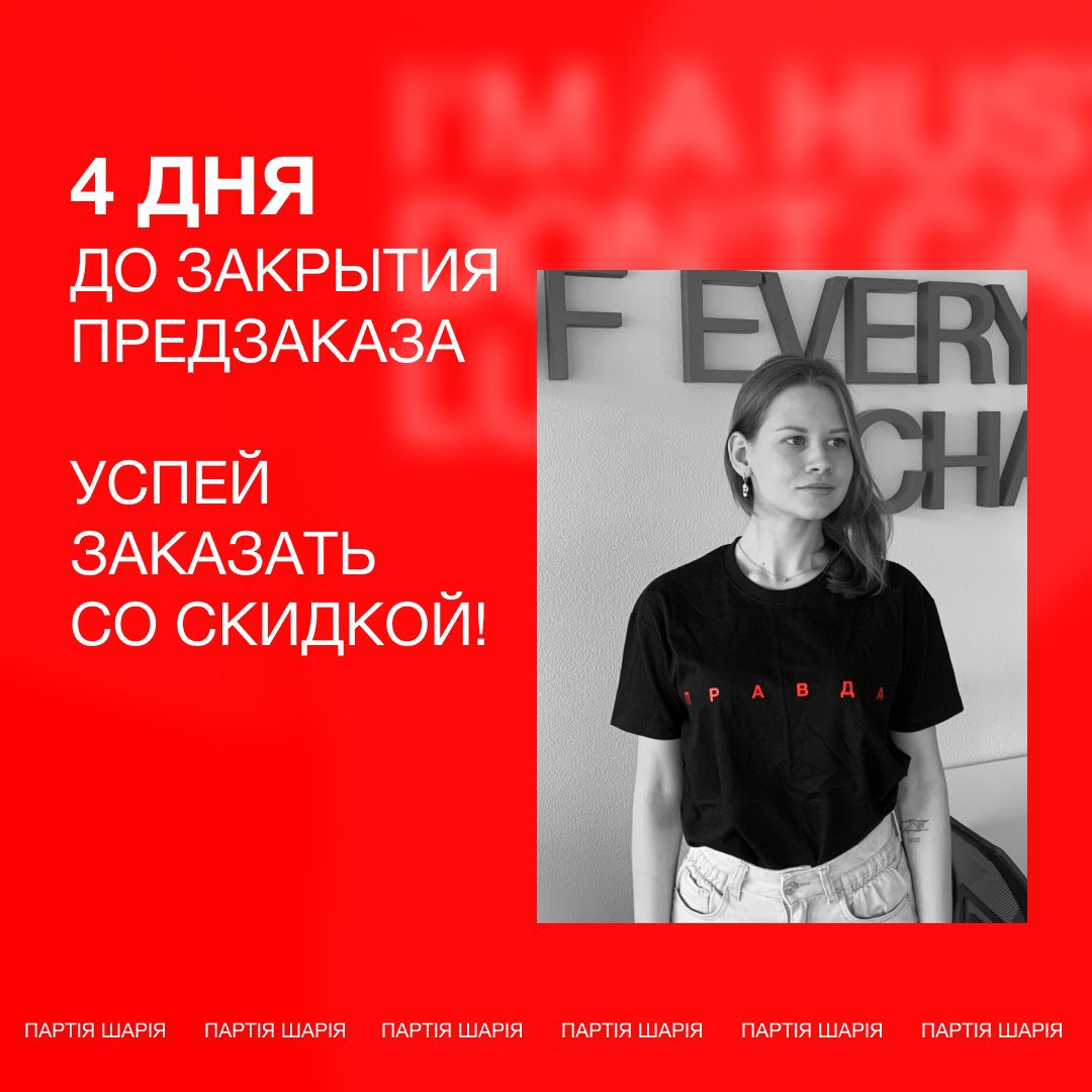 Если вы еще не заказали себе крутую футболку или свитшот от Партии Шария, поторопитесь, ведь сегодня последний день предзаказа, когда вы получаете скидку.