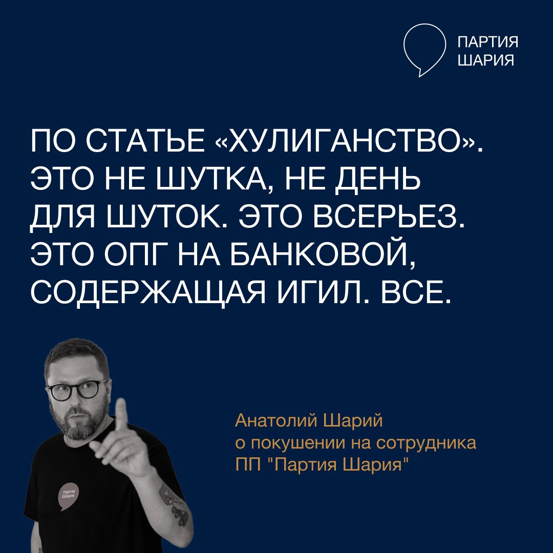 Сегодня ночью в Харькове на сотрудника партии Шария, который 17 июня вел колонну в Киеве, совершили нападение с целью убийства. Возле его дома, когда он был один.