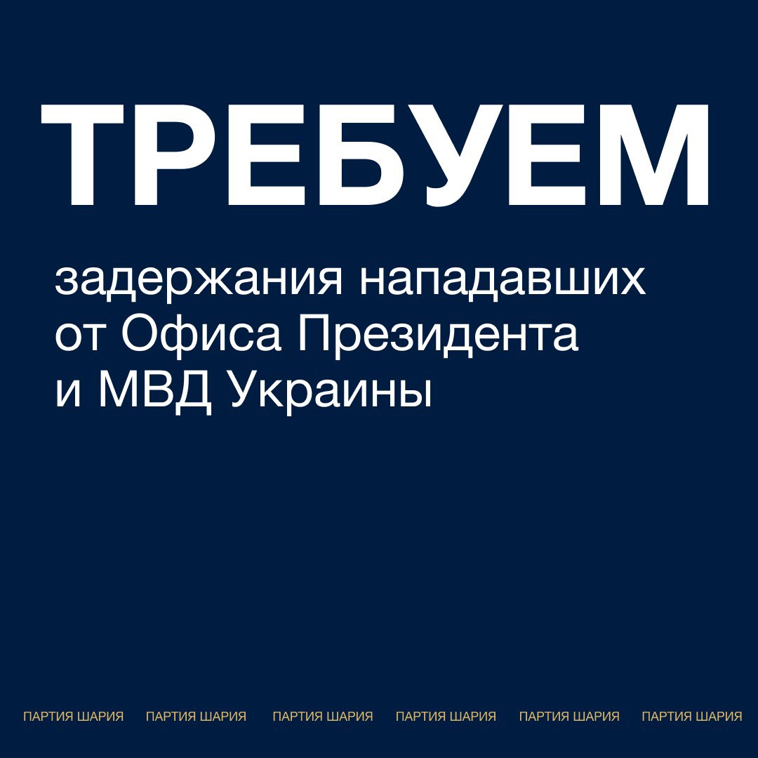 ​​Партия Шария требует официальной реакции от Министра внутренних дел Украины и президента Владимира Зеленского на избиение и угрозу жизни нашим сторонникам и сотрудникам.