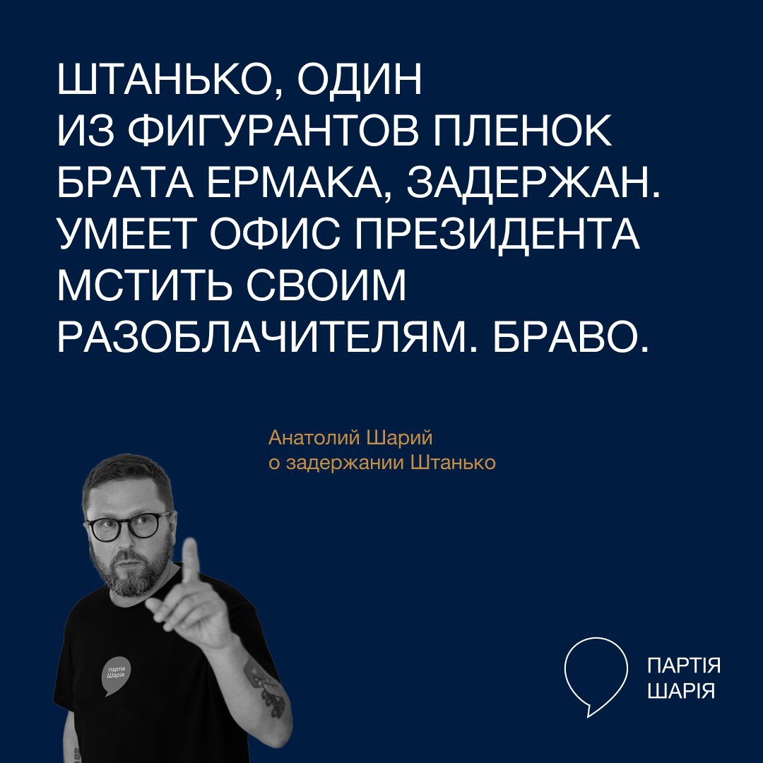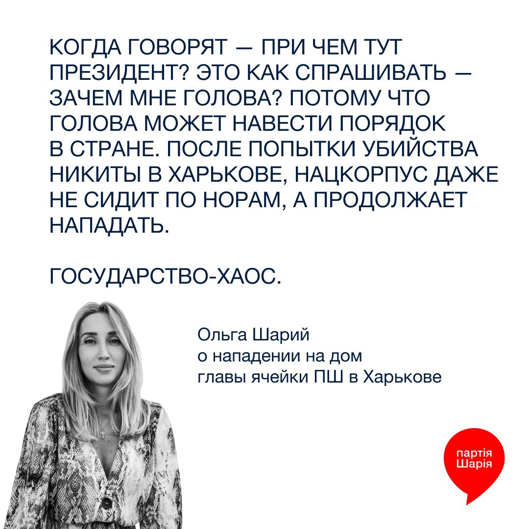 8. В Офисе Президента решили запретить Партию Шария вместе с организацией Нацкорпус. Власти сделали для этого все: нашли оружие у нашей охраны, передали видео Нацкорпусу, который преподнес информацию, как про сотрудников Партии Шария и, конечно, разместили это в СМИ. Методы их борьбы уже давно известны. Мы никому не угрожаем, кроме рейтинга Зеленского, в то время пока они действуют по беспределу.