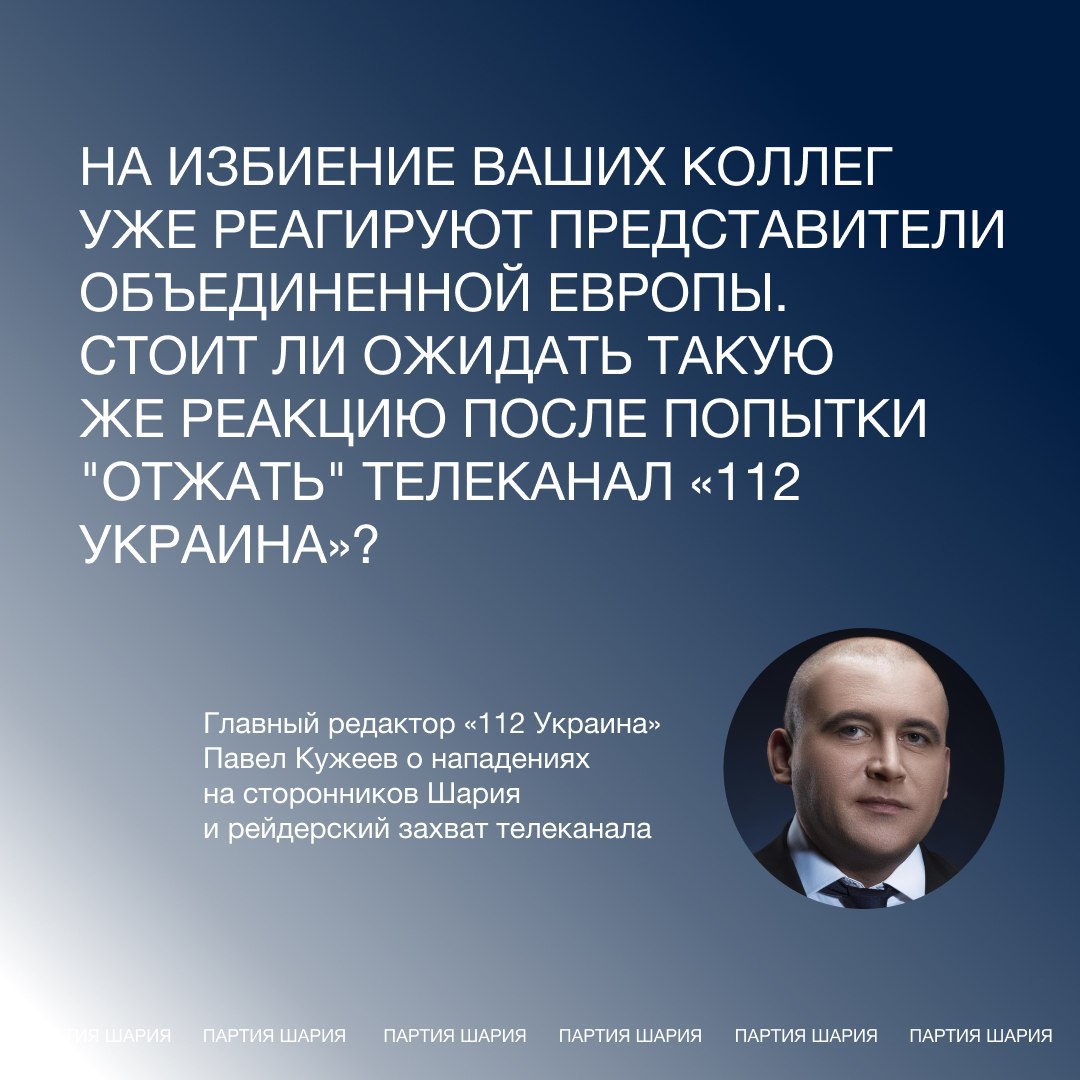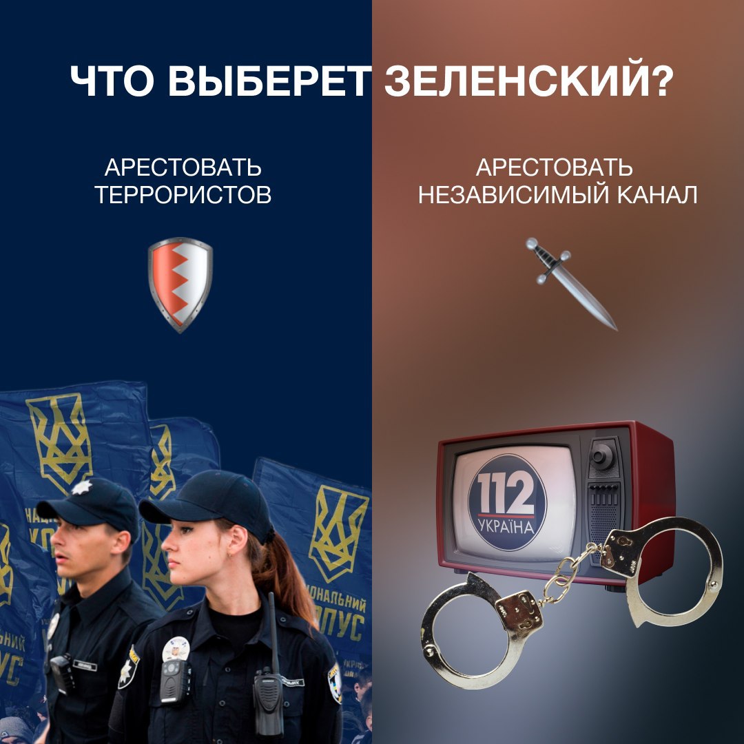 1. Офис Президента приказал совершить атаку на 112 канал, чем снова нарушил закон. Попытка рейдерской атаки на телеканал «112 Украина» была осуществлена по указанию президента Украины Владимира Зеленского. Соответствующие задачи получили подконтрольные президенту Служба безопасности Украины и Офис генерального прокурора. Уже были нападения на людей, теперь на свободу слова. Что будет дальше?