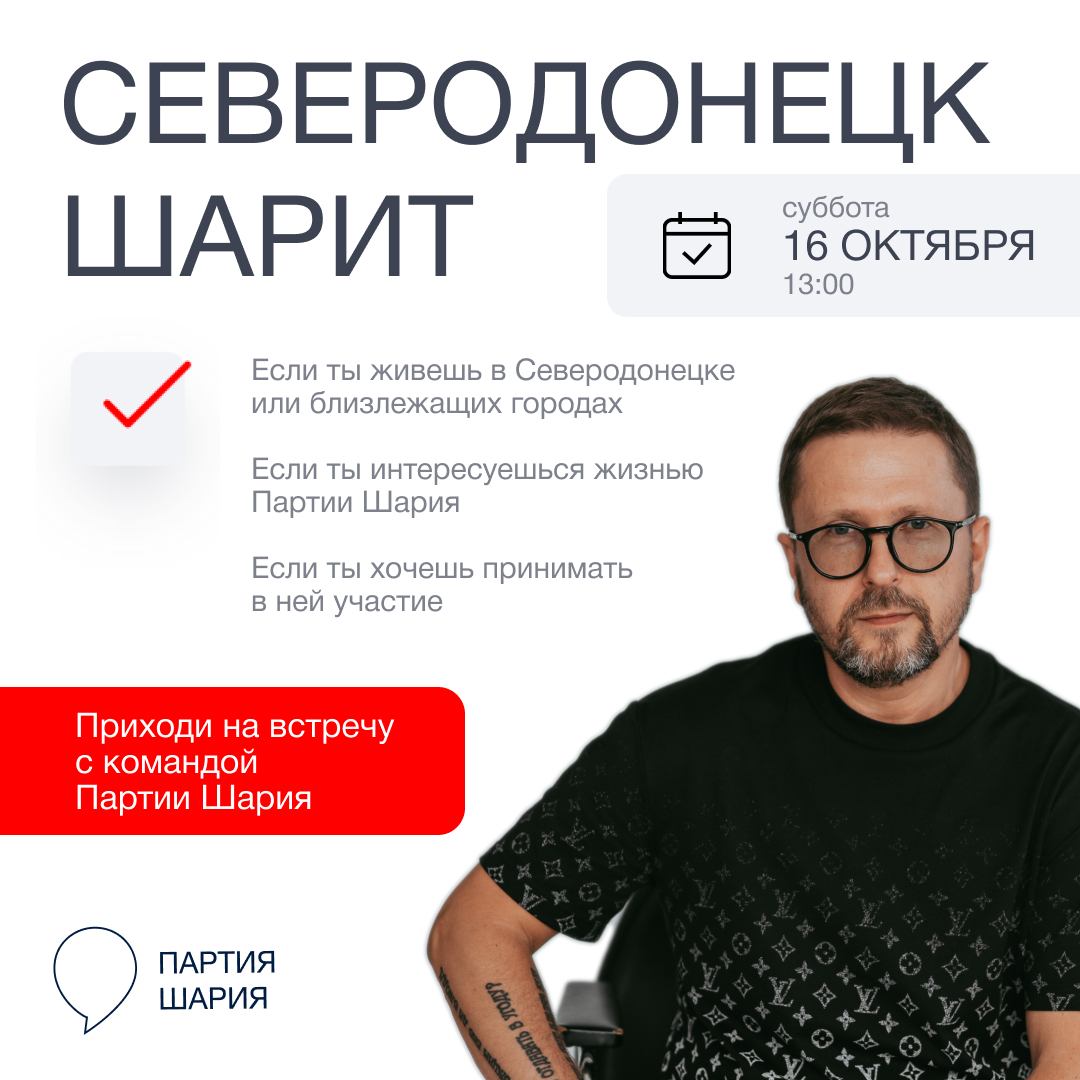 Ты первым узнаешь адрес нового офиса Партии Шария в Северодонецке, примешь участие в обсуждении партийных задач и построении плана работы✌🏼