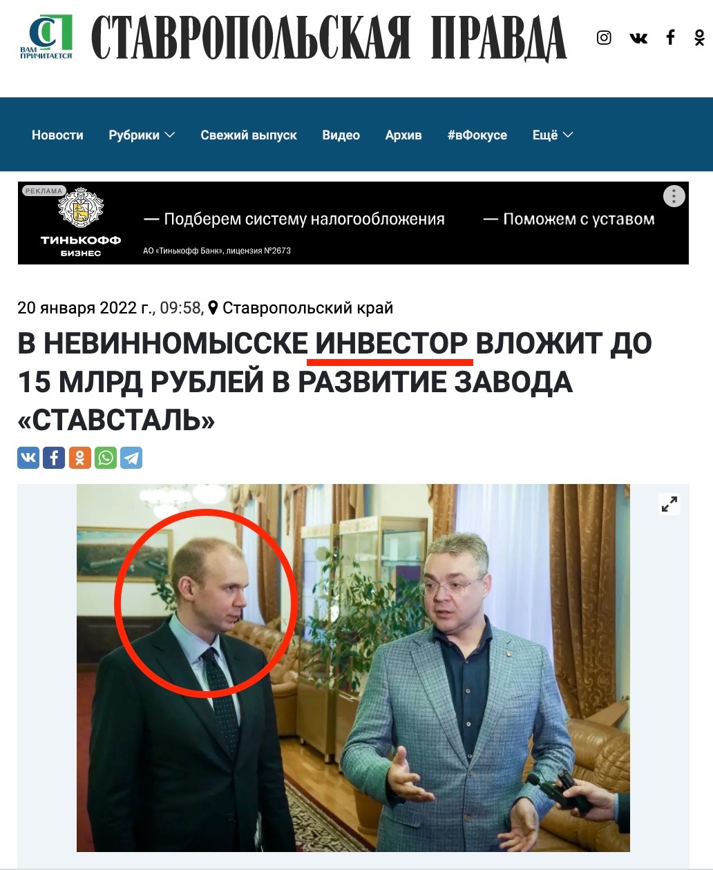 Одно из местных изданий сообщает, что «инвестор (представлен он как «акционер компании «Бастион» Сергей Курченко», - прим.) планирует выделить до 15 миллиардов рублей» на расширение производства металлургического завода «СтавСталь».
