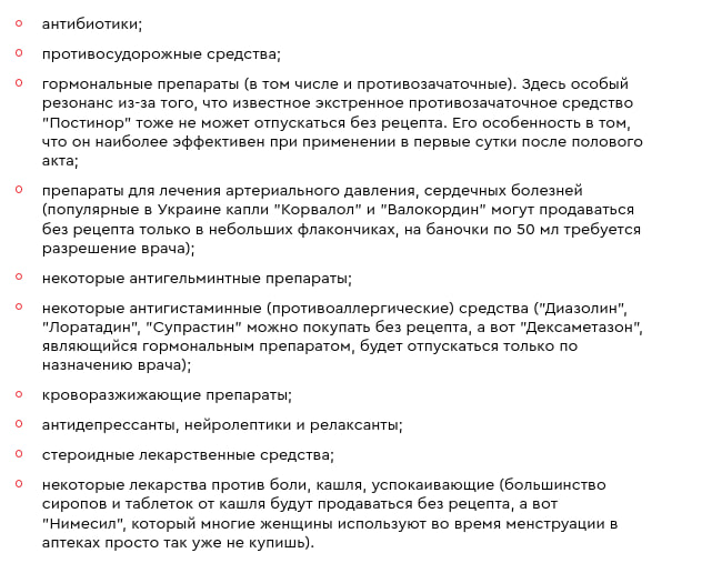 На фото представлен перечень лекарств, которые в Украине должны отпускаться только по рецепту.