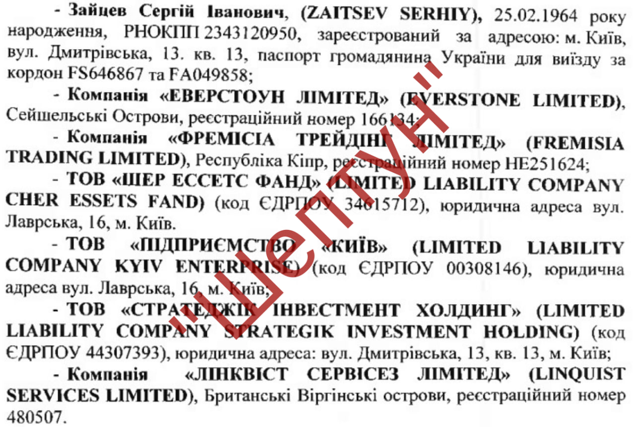 Вчера мы уже писали, что реанимировали уголовное дело №42020000000001928 от 09.10.2020 на экс-президента. Данное дело касается уклонения от уплаты налогов через офшорные компании. Как нам стало известно, порошенковские офшорные прокладки "ЕВЕРСТОУН ЛІМІТЕД", ТОВ «ШЕР ЕССЕТС ФАНД» и компания "ФРЕМІСІА ТРЕИДІНГ ЛІМІТЕД" владели долями в уставном капитале ООО "Предприятие Киев".