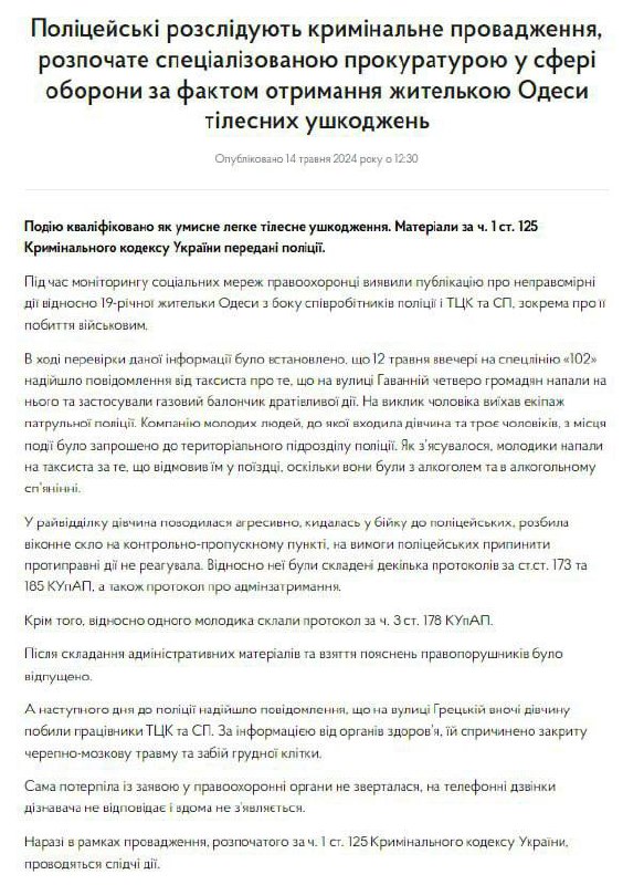 Также сообщается, что незадолго до инцидента с представителем ТЦК девушка с тремя друзьями пришла в полицейский участок писать заявление на таксиста, который набросился на них с газовым баллончиком, однако правоохранители сообщили, что вызов им поступил именно от таксиста и ситуация была прямо противоположной: с баллончиком набросились на него.