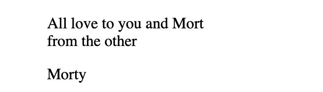 Случайно был обнаружен небольшой архив о Фельдмане, здесь кусочек его переписки с Джоан, передает приветы другому Морти, мужу Джоан Ла Барбары Мортону Суботнику.