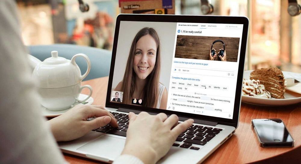 Вместе с преподавателем вы занимаетесь по видео и аудио в режиме реального времени. Каждый из вас может нажать на паузу или отмотать назад, чтобы уточнить значение услышанного слова. Вы оба слышите, видите запись и оба управляете ей.