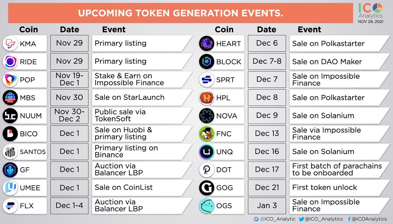 Some of the upcoming TGEs/sales/auctions/listings you should know about.