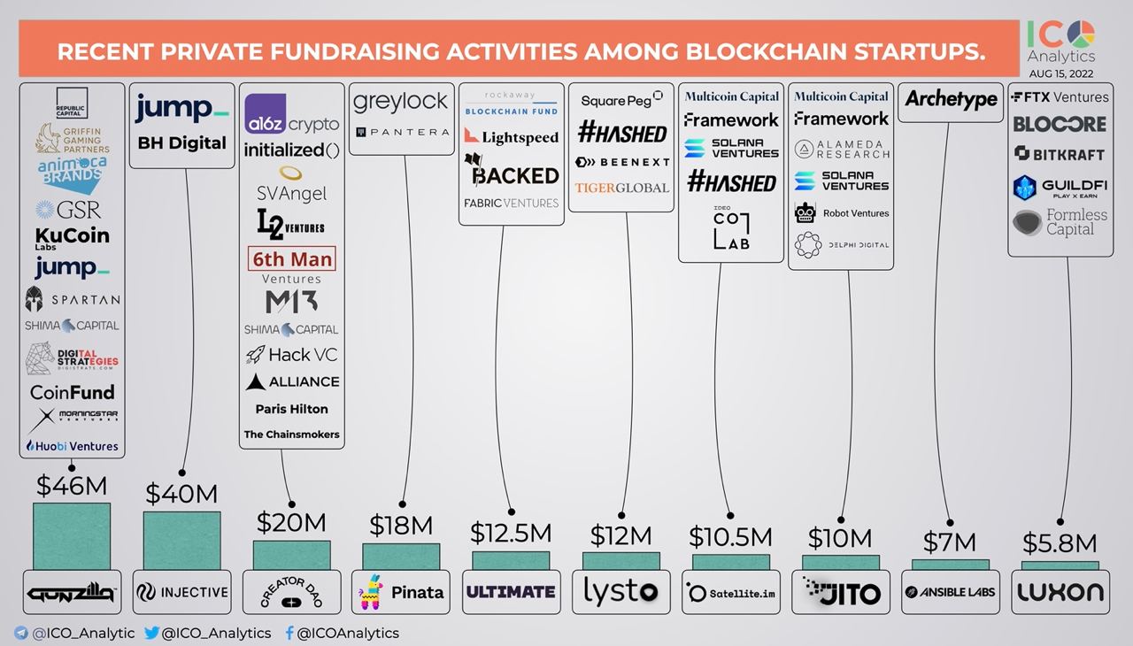 Some of the recent private fundraising events among blockchain startups you should know about. August 2022, part 1.