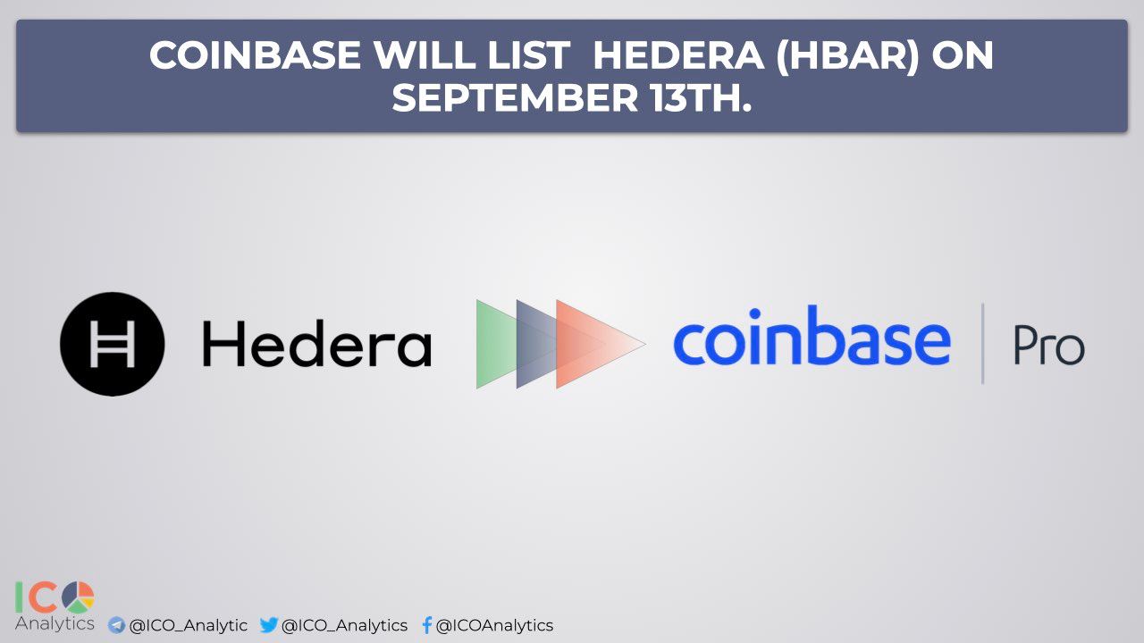 Coinbase will list Hedera (HBAR) on September 13th. Trading will begin on or after 9AM PT on 13 September 2022, if liquidity conditions are met.