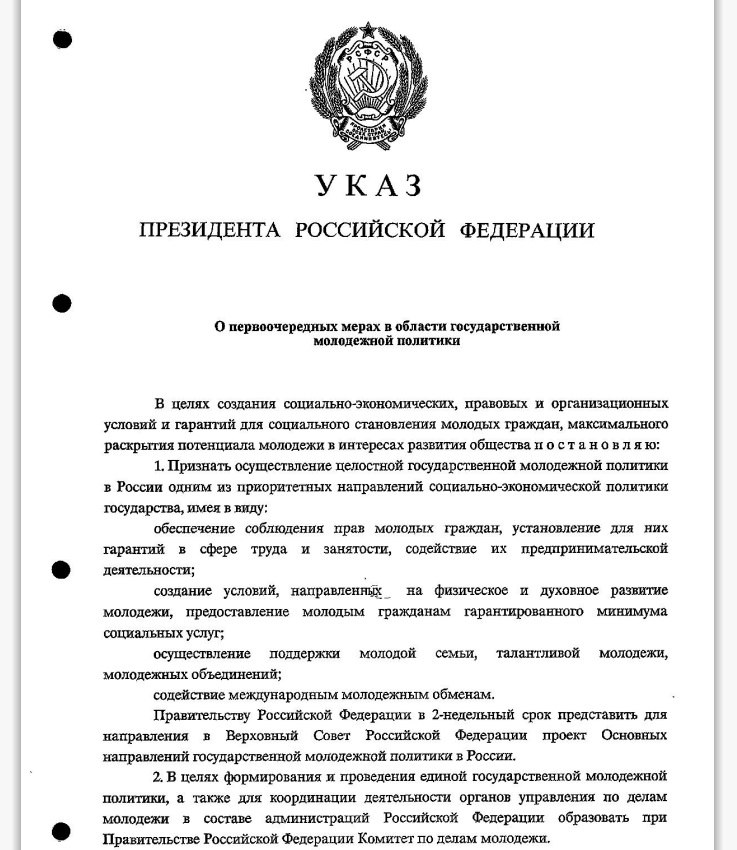 🔝Этот важнейший законодательный акт был принят по инициативе Национального Совета молодёжных и детских объединений России и Российского союза молодёжи. И вот уже четвёртый десяток лет правовое регулирование ГМП осуществляется в соответствии с Указом №1075.