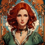 У него длинные красные волосы, черный плащ, черные же перчатки из лакированной кожи и совершенно желтые, кошачьи глаза. Говорит бархатно: