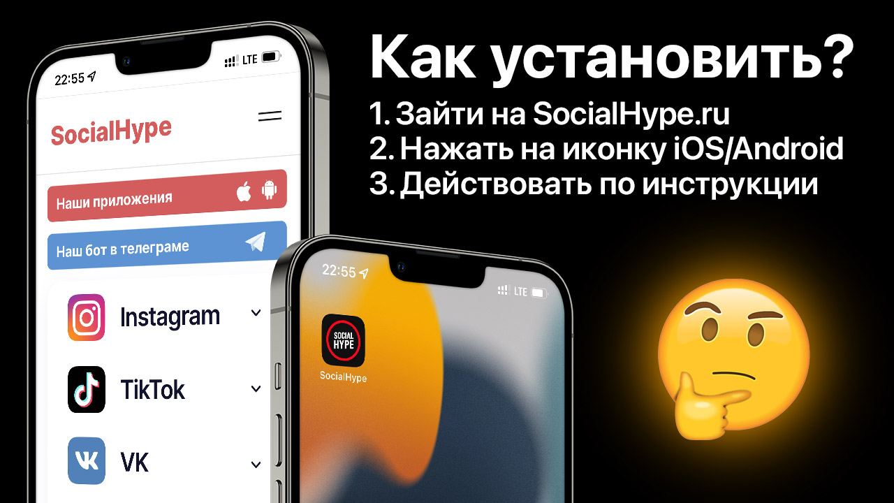 Мы понимаем, что многие клиенты нуждаются в наших услугах на ежедневной основе, для того чтобы не потерять доступ к сервису, предлагаем установить SocialHype как отдельное приложение на свой телефон, либо использовать сайт. Там те же цены, услуги и условия, что сейчас в боте.