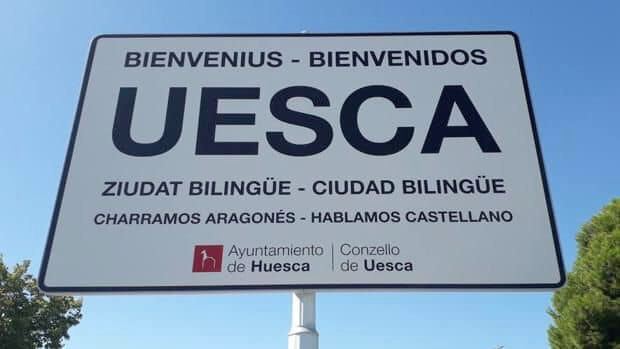 Любители и увлечённые лингвистикой знают, что каталанский и кастильский - не единственные романские языки, сохранившиеся в этих краях. В Каталонии, например, третий официальный язык (о котором почти никто не знает) - аранский, диалекст гасконско-окситанского, осколок древней окситанской общности, на котором говорят в регионе Валль-дАран (окситанский - признанный миноритарный язык во Франции и Монако). В соседнем Арагоне в нескольких районах до сих пор говорят ещё на арагонском - единственной выжившей ветви средневекового Наваррско-арагонского наречия, отличающейося от испанского (по мере интеграции Арагона в испанское королевство, арагонский язык был постепенно вытеснен кастильским, который мы теперь знаем под названием “испанского”). Вот табличка на въезде в арагонский город Уэска: