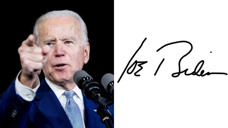 Графолог тушунтиришича, Байденнинг қатъиятли инсонлигидан далолат берувчи дастхати у ўз президентлик муддати давомида жамиятдаги жаҳон тенденцияларига тезкор жавоб бера олишидан сўзламоқда. Жо Байденнинг интеллектуал бошқарув услуби Доналд Трампнинг агрессив бошқарув услубидан кескин фарқланади.