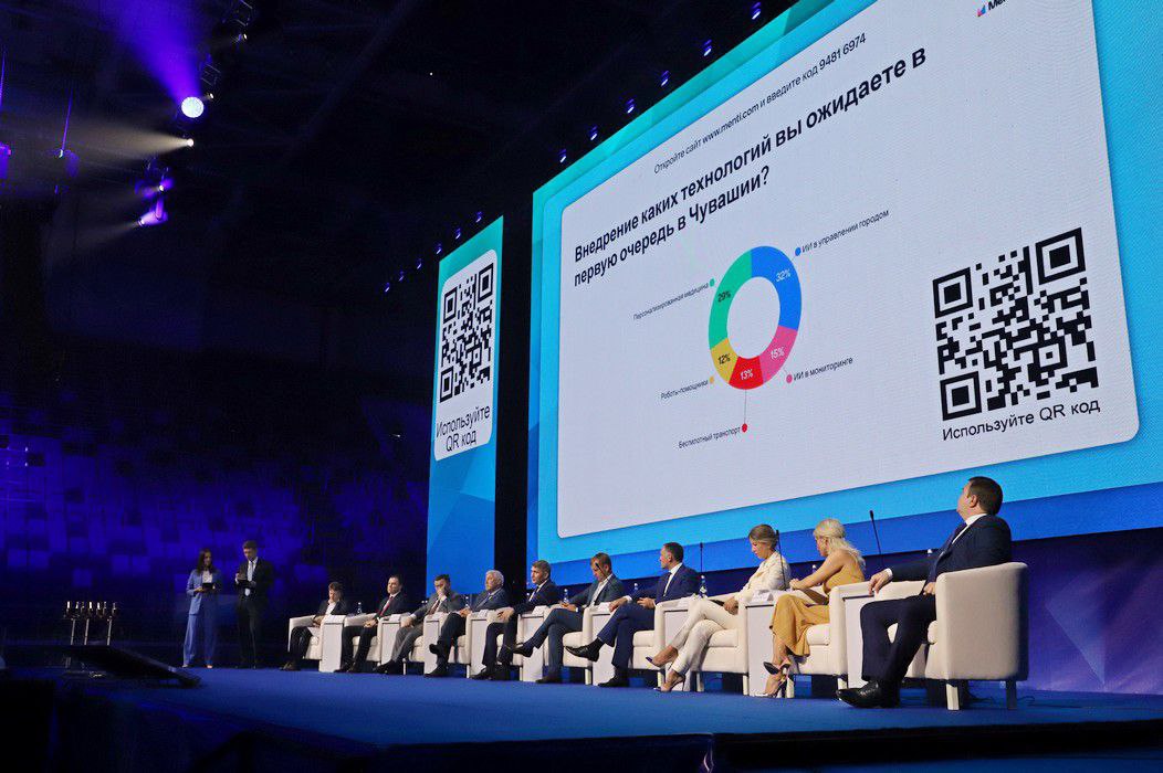 На Чебоксарском форуме организаторы с помощью виртуальной студии «поместили» в неё людей из разных уголков страны. Эффект - будто они в одном помещении. И не скажешь, что интервьюеры за 600 км от Чебоксар.