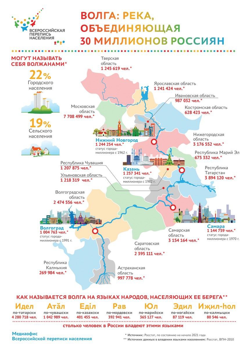 Из регионов России чуваши преимущественно проживают в республиках Татарстан (116,3 тыс. человек, или 8,1% от численности чувашей в целом по России) и Башкортостан — 107,5 тыс. человек, или 7,5%, в Ульяновской области — 95,0 тыс. человек, или 6,6%, в Самарской области — 84,1 тыс. человек, или 5,9%, в Тюменской области — 25,7 тыс. человек, или 1,8%. Значительное число чувашей проживает также на территории города Москвы — 14,3 тыс. человек (1,0%), Оренбургской и Московской областей — по 12,5 тыс. человек (по 0,9%), Саратовской области — 12,3 тыс. человек (0,9%), Красноярского края — 11,0 тыс. человек (0,8%), Нижегородской области — 9,8 тыс. человек (0,7%), Кемеровской области — 9,3 тыс. человек (0,6%), Свердловской области — 8,3 тыс. человек (0,6%). От 6 тыс. до 4 тыс. чувашей проживает также в Республике Марий Эл, Волгоградской и Пензенской областях, в Республике Коми, Пермском крае, Иркутской и Томской областях.