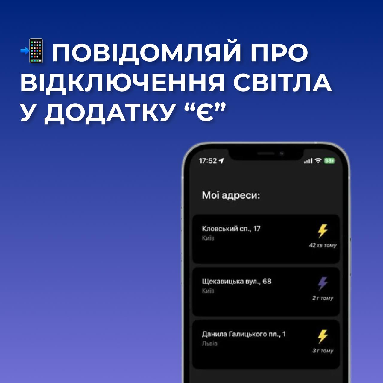 Саме тому було створено додаток "Є?": він дозволяє мешканцям будинків повідомляти про відключення електроенергії