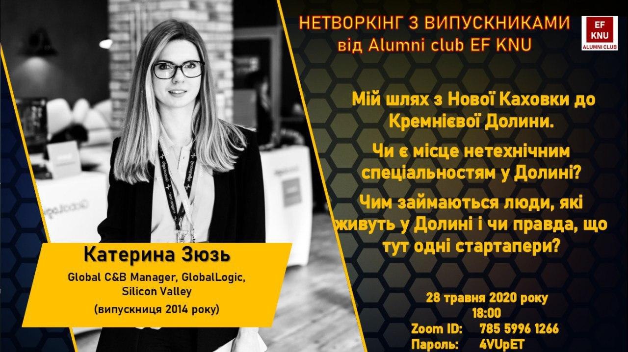 І вже цього четверга 28 травня 2020 року о 18:00 Катерина поділиться секретами шляху випускниці ЕФ до Кремнієвої долини