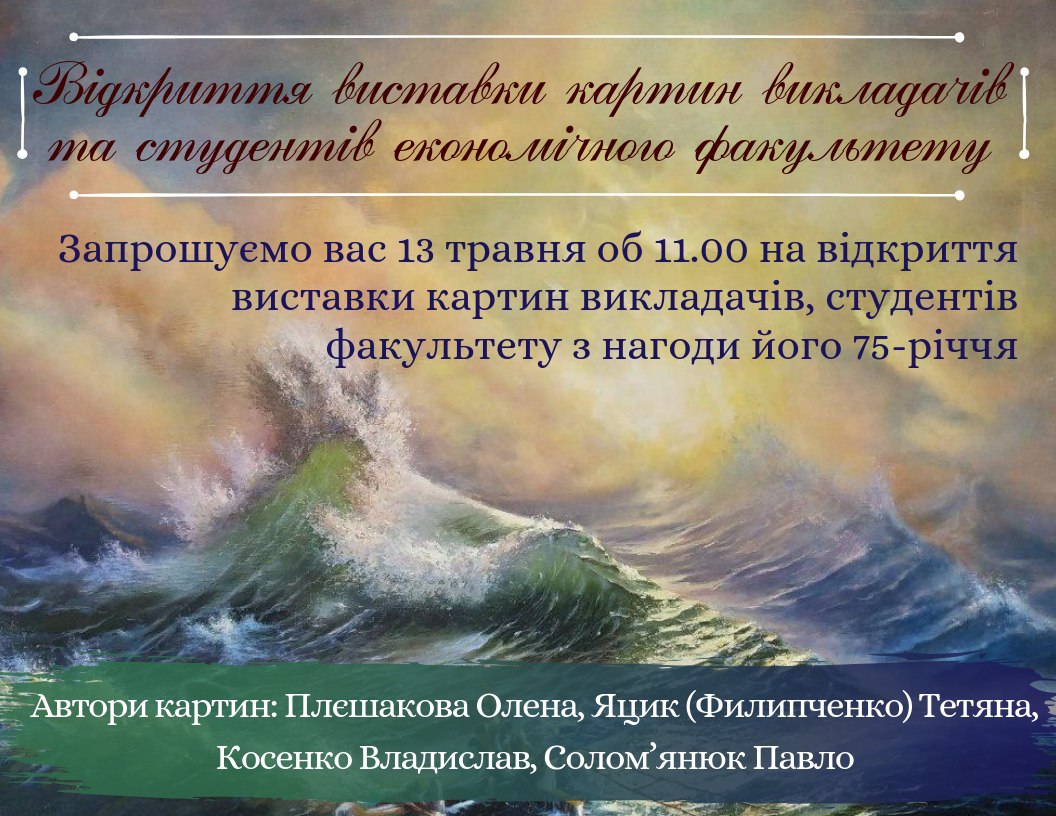 Вже в понеділок, 13 травня об 11.20, на економічному відкриваємо виставку картин студентів та викладачів факультету!