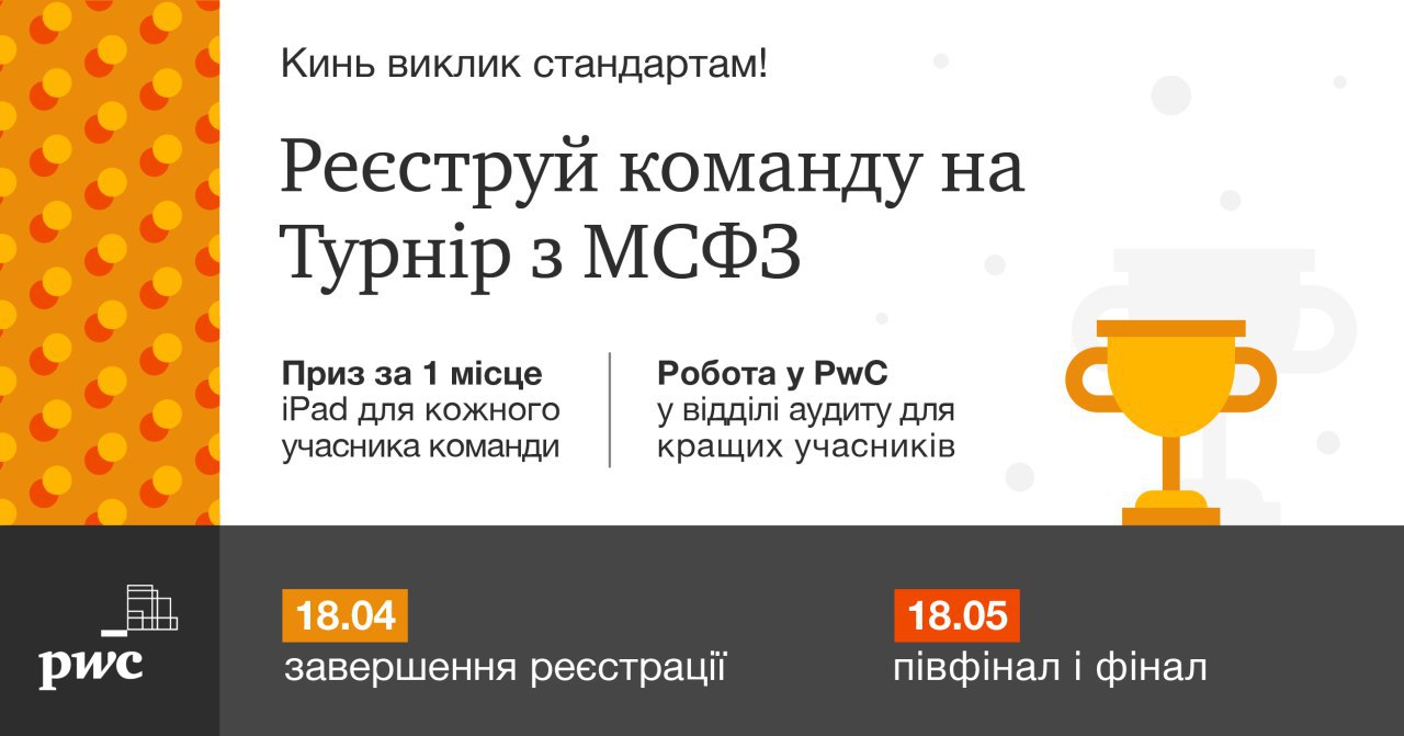 📍 Можливість виграти iPad, вивчаючи МСФЗ! Більше інформації на pwc.com/ua/IFRStournament. Дедлайн: 18 квітня.