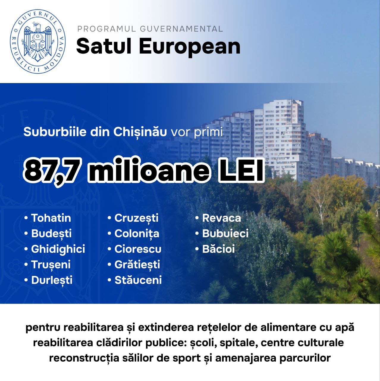 Prieteni, în perioada următoare voi oferi mai multe detalii despre Programul Satul European. Începem cu mun. Chișinău. Mult spor primarilor!🏡 #SatulEuropean