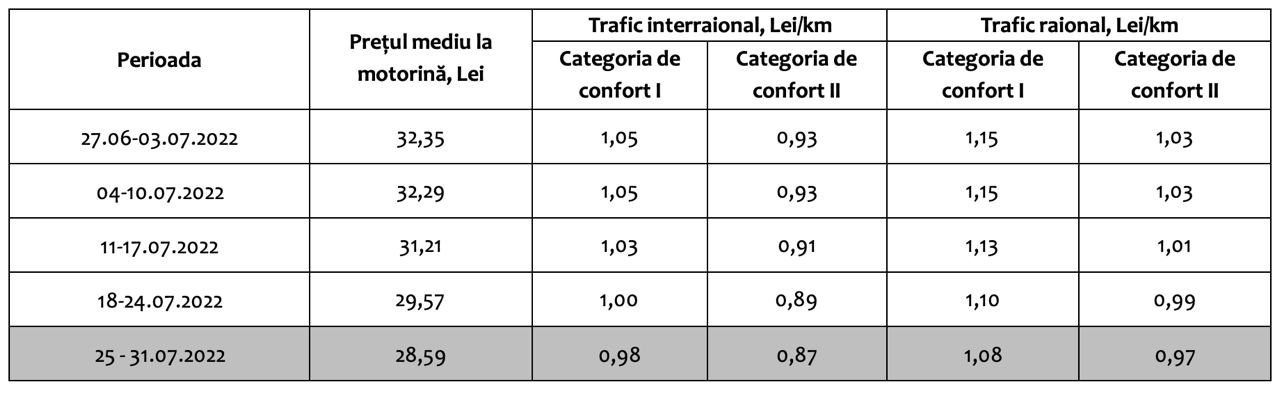 🚍 Am primit mai multe solicitări de la oameni de a verifica prețul biletelor pentru transportul inter raional și raional în contextul reducerii prețurilor la produsele petroliere. Într-adevăr, prețul plafon pentru călătoria în transportul inter raional și raional continuă să scadă în ultimele săptămâni în măsura în care scade și prețul la motorină (vedeți imaginea).