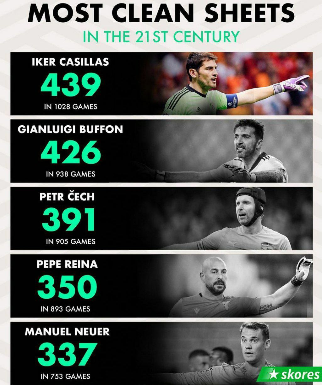 📊 Статистика лучших вратарей ХХI века по количеству "сухих" матчей.