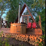 Очень уютно и атмосферно! Домик стоит на сваях, на высоте 2-2.5 метра, с терассы очень красивый вид на закаты и рассветы. Так же, на терассе расположена купель. Что очень удобно. С терассы есть лесенка вниз, и там стоит мангал. (Сетку и шампура выдают) Отдельно хочу сказать про еду. Офигенно вкусно!!! Не ожидал, что будет так вкусно и разнообразно. Огромная благодарность повару!🔥