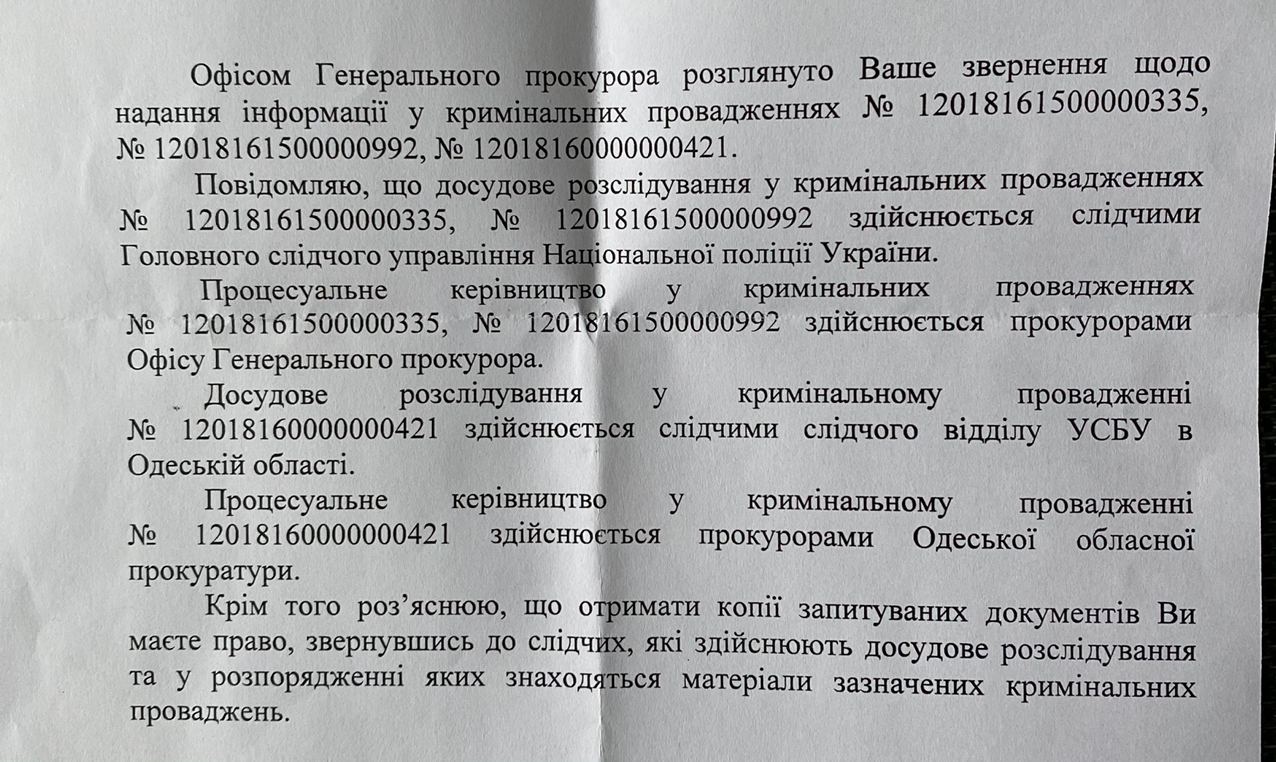 З третьої спроби Офіс генпрокурора мені надав відповідь про долю трьох кримінальних проваджень щодо нападів на мене.