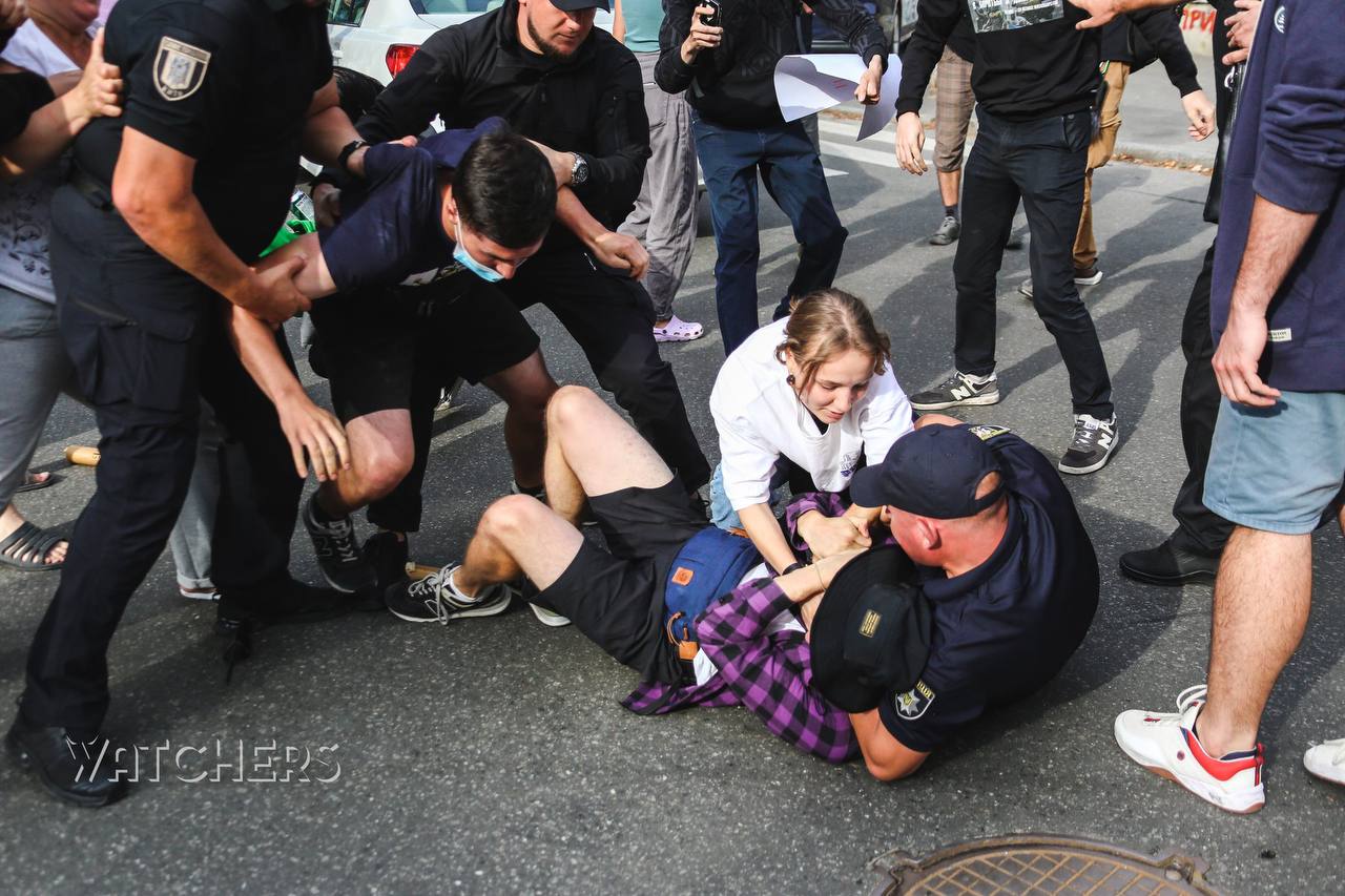 Вчора там же поліція била активістів та незаконно затримувала, бо вони захищали садибу від знесення.