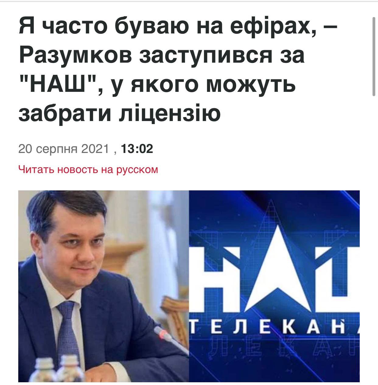 Канал НАШ — інформаційна зброя агресора, і туди не варто ходити кожному, хто себе поважає.