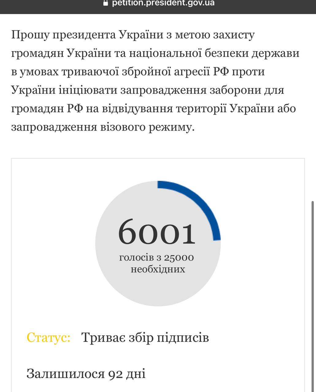Дуже швидко петиція про заборону в‘їзду в Україну громадянам РФ набирає голоси.