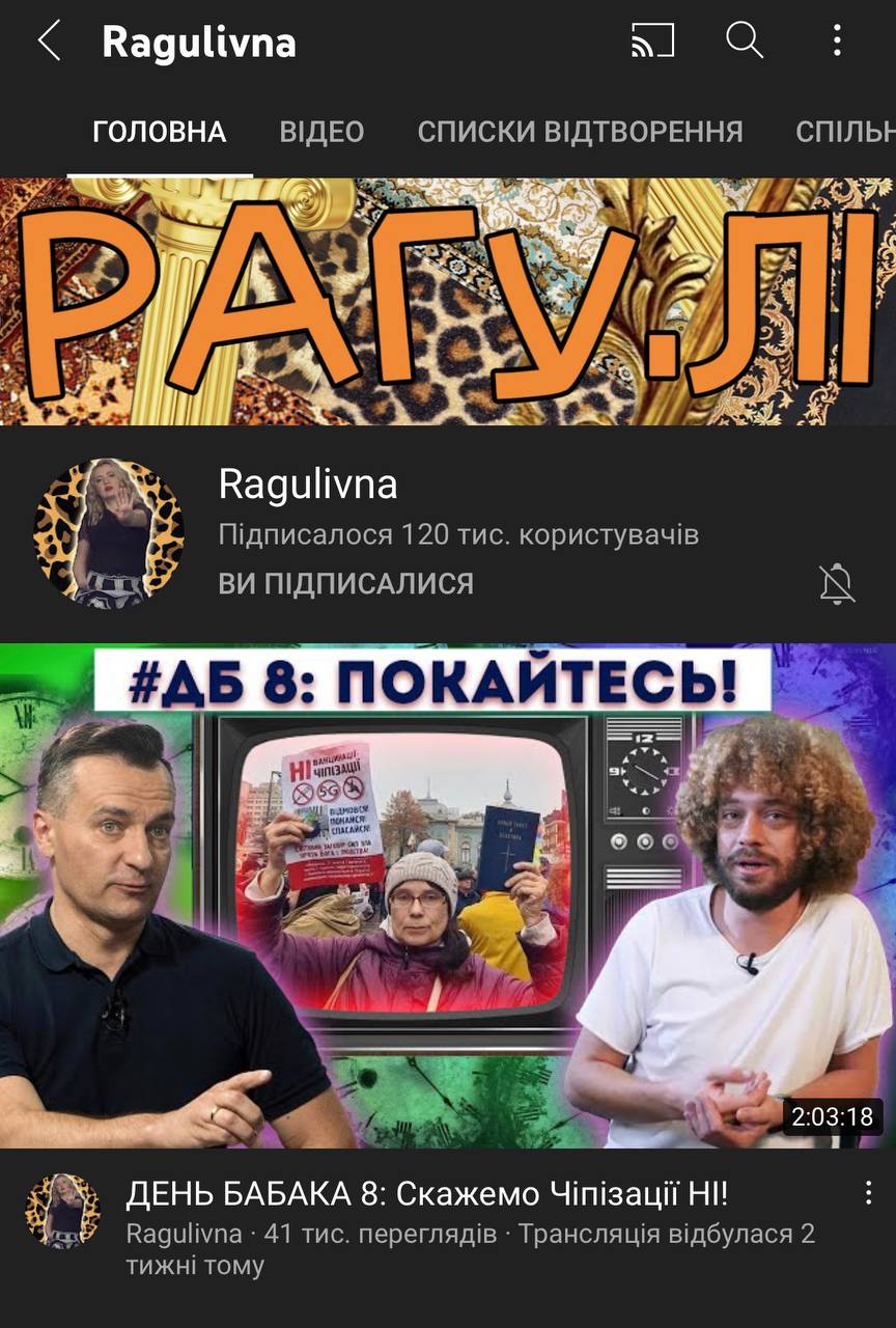 🎉YouTube розблокував канал «Рагулівна», який був напередодні заблокований без попереджень.