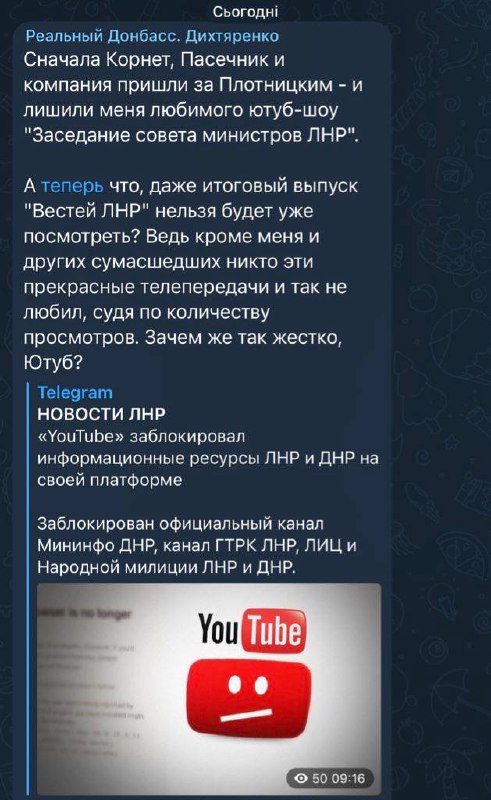 - видалено одразу декілька ютуб-каналів «ЛДНР».